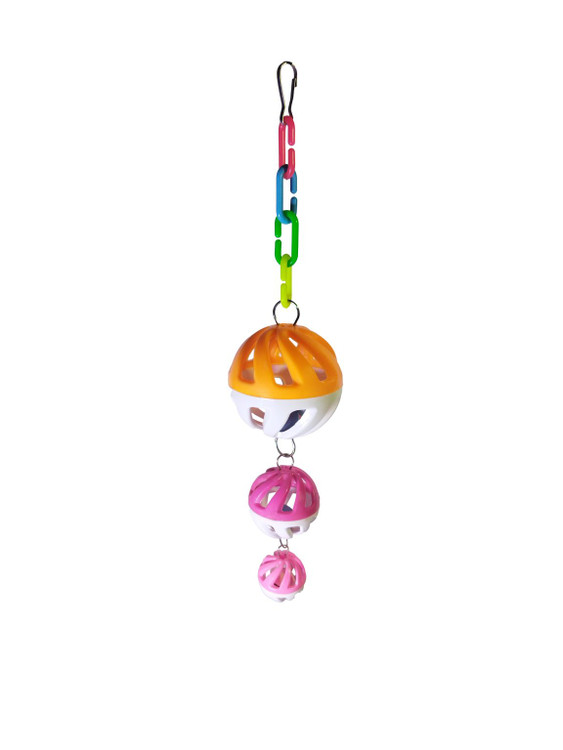 اسباب بازی سه توپ برای پرندگان شما از بهترین متریال تولید شده است. طراحی محصول به گونهای است که با آویزان شدن از قفس و معلق شدن با تکان خوردن صدا تولید می کند و حواس پرنده را به خود جلب می کند. علاوه بر این در توپ ها شیارهایی متناسب با منقار پرندگان در نظر گرفته شده که پرنده بتواند از آن بالا برود و اوقات خوشی را سپری کند.